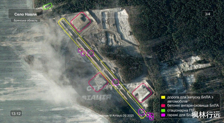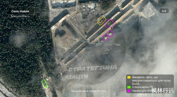 俄罗斯正在积极扩建位于布良斯克地区的“沙希德”无人机发射基地,该基地距离乌克兰 70 公里。卫星图像显示,这里尤其有三座用于发射“沙希德”和“格伯”无人机的固定发射装置,以及一条专为从车辆平台发射无人机而设计的专用道路。